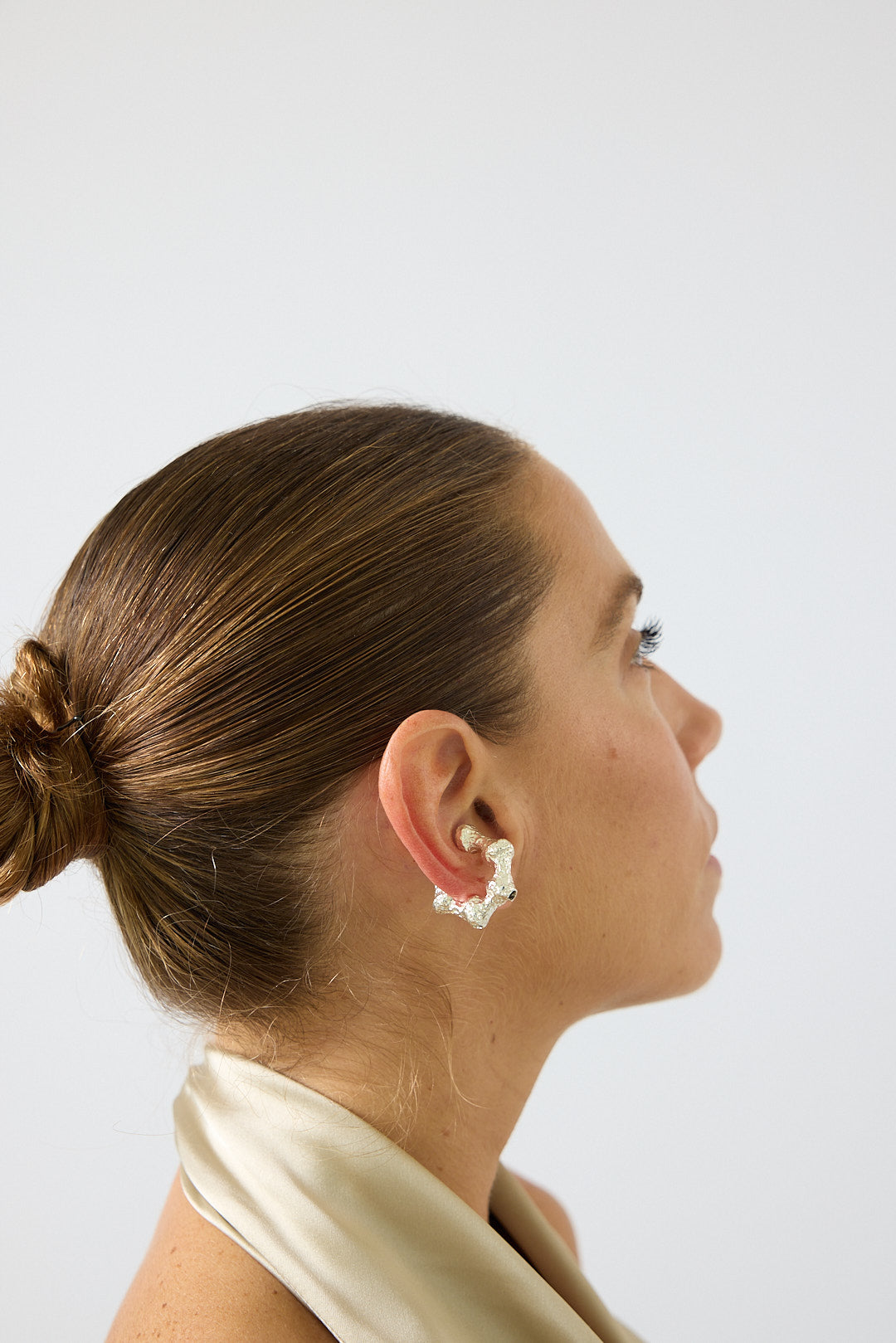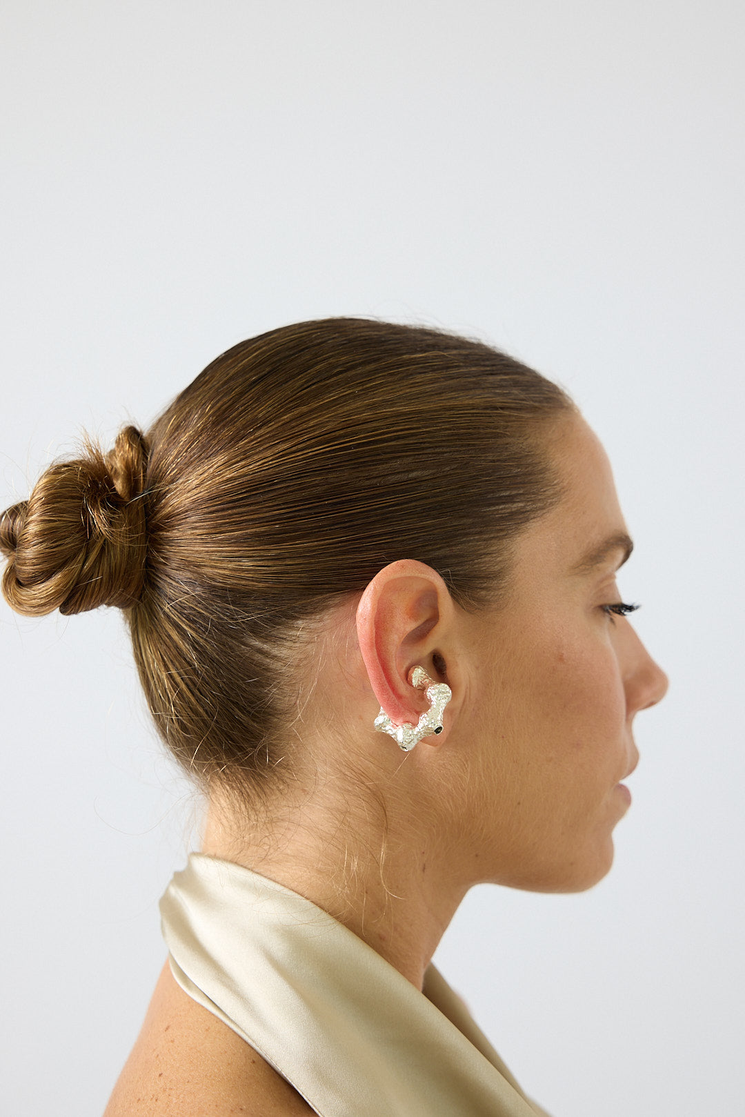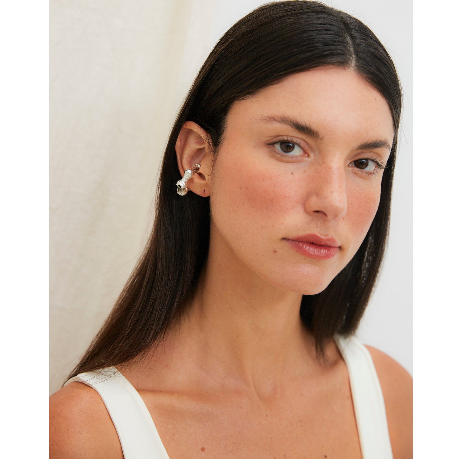 Formation Bold Ear Cuff - a trendy statement accessory exuding bold style and adding an edgy touch to any look. Perfect for making a fierce fashion statement in silver.